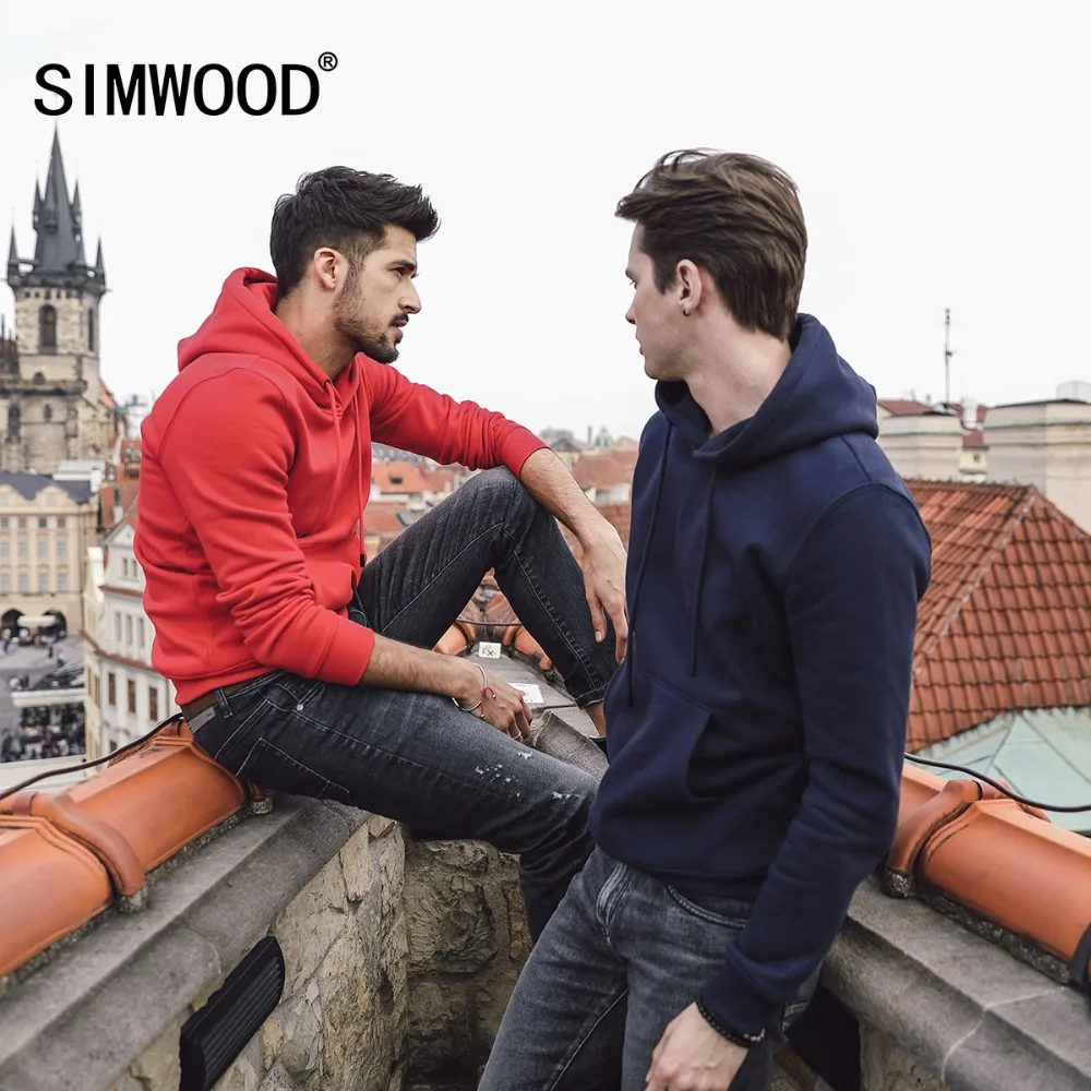 Beste Koop SIMWOOD Hoodies Mannen Casual Effen Kleur 2018 Herfst Winter Nieuwe Warme Fleece Hooded Sweatshirts Hoge Kwaliteit Plus Size 180219 Goedkoop