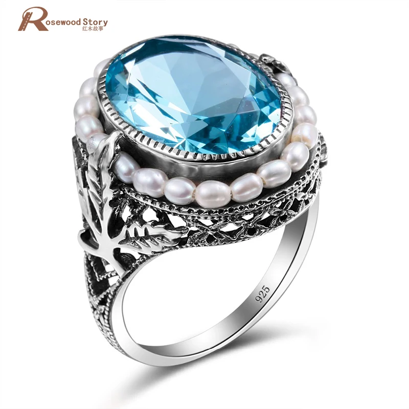 Kopen Goedkoop 100% Natuurlijke Parel Ringen Maanlicht Blauwe Steen CZ Echt 925 Sterling Zilveren Engagement Wedding Ring Vintage Fijne Sieraden Voor Vrouwen Prijs